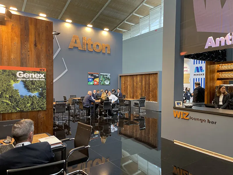 Progettare uno stand comprensivo di un bar per un’azienda leader nel settore degli additivi chimici per la produzione di laminati plastici. Lo stand si trovava all’evento fieristico Ligna di Hannover, posizionato strategicamente in un’area di forte passaggio tra i padiglioni, con l’obiettivo di massimizzare l’attenzione e attrarre il maggior numero di visitatori.